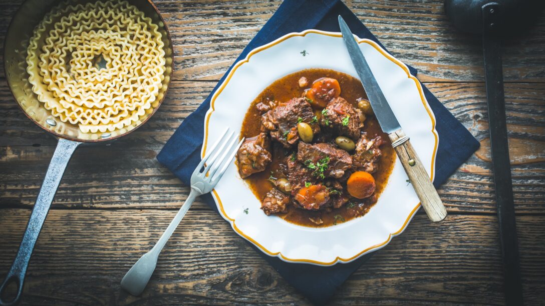 lice the steaks vertically across the grain to be about 1/4 inch thick. The final portions should be about the size of the palm of your hand. Mix Parsley, onions, egg yolks, marrow, ginger, saffron and salt together. Put two or three tablespoons of the mixture on the center of each steak, roll them up, and secure with a toothpick. Roast at 350°F until filling reaches 165°F – about 20 minutes. Sprinkle with spices, vinegar, and crumbled egg yolks.